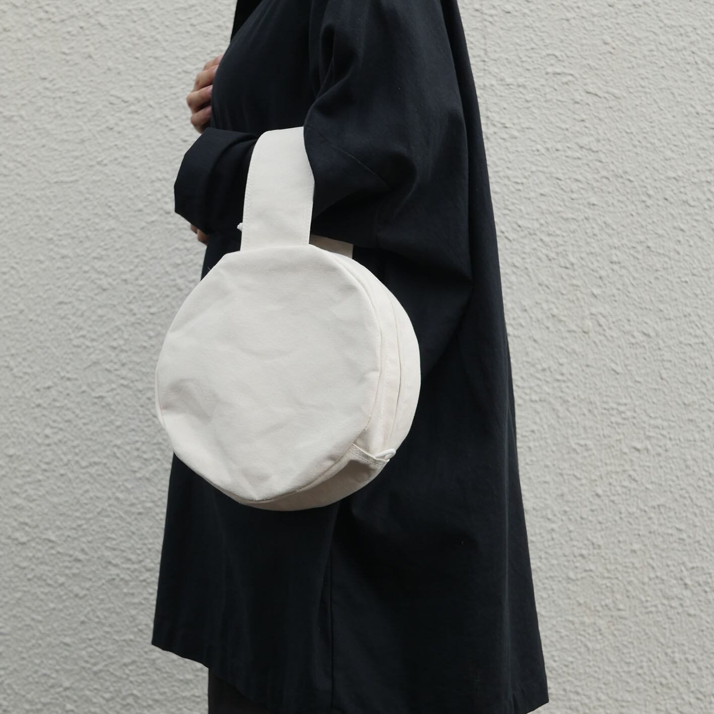 持ち手太めのワンハンドル丸バッグ。