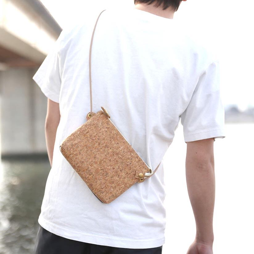 コルクと数種類の彩り豊かな生地を組み合わせた、サコッシュにもなるポーチです。
