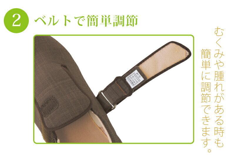 ②むくみや腫れがあるときも簡単にベルトで調節できます。