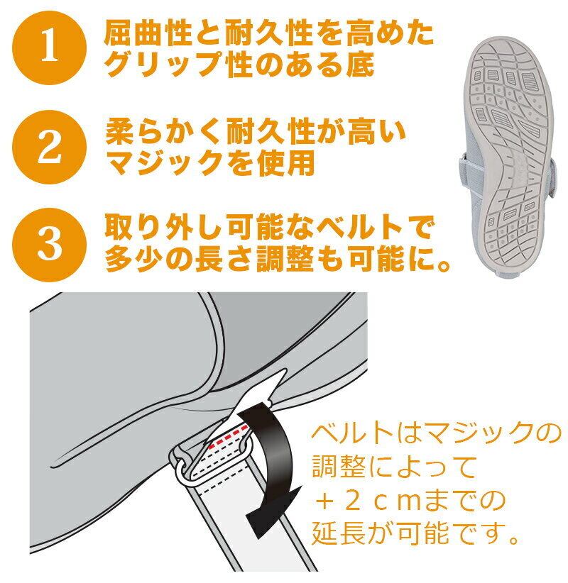 ②むくみや腫れがあるときも簡単にベルトで調節できます。